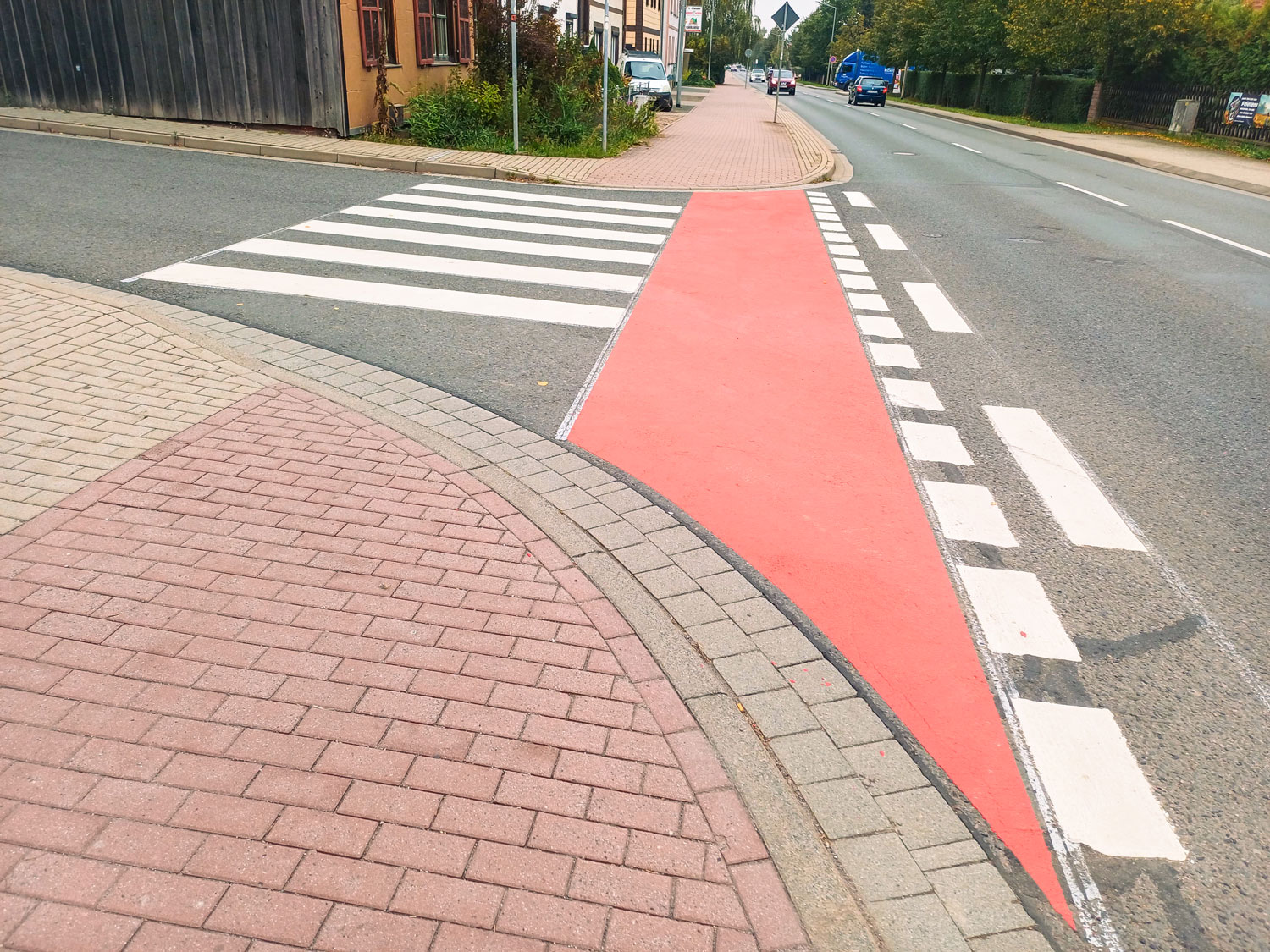 An der B7, Weimarer Straße, wurden jüngst Maßnahmen zur Verbesserung der Verkehrssicherheit umgesetzt. An den Einmündungen Wilhelm-Umbreit-Straße, Friedhofsweg und Kindleber Weg wurden unter anderem rote Fahrbahnmarkierungen aufgebracht, die insbesondere den Radverkehr deutlicher sichtbar machen und die Aufmerksamkeit aller Verkehrsteilnehmenden erhöhen.